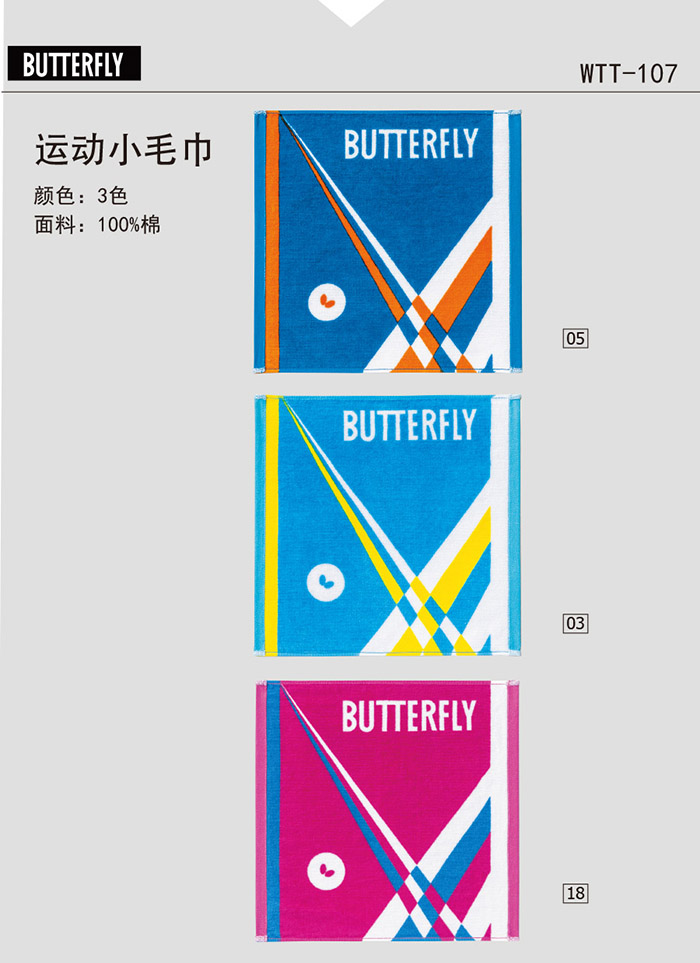 蝴蝶BUTTERFLY 新款運動汗巾 方巾 WTT-107-1 3色純棉 100%吸汗