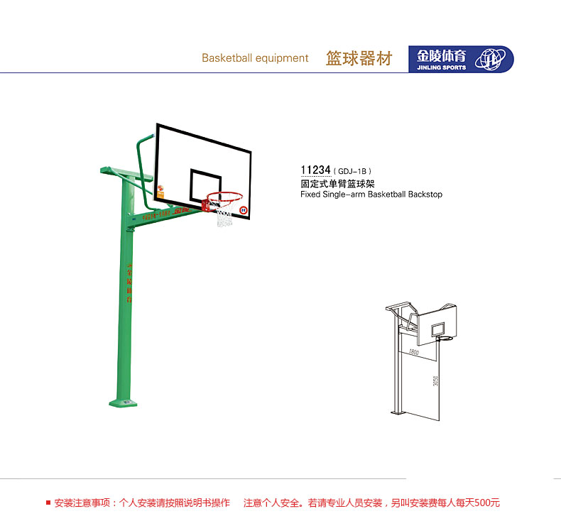 金陵籃球架 GDJ-1B固定式單臂籃球架