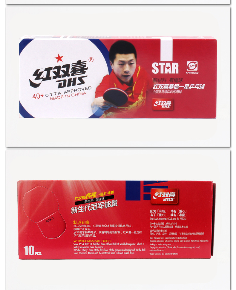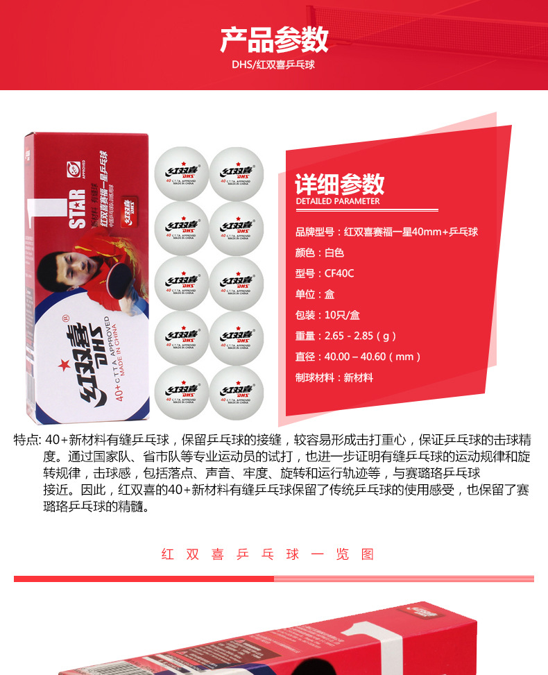紅雙喜賽福白色一星40mm+乒乓球(十只裝)