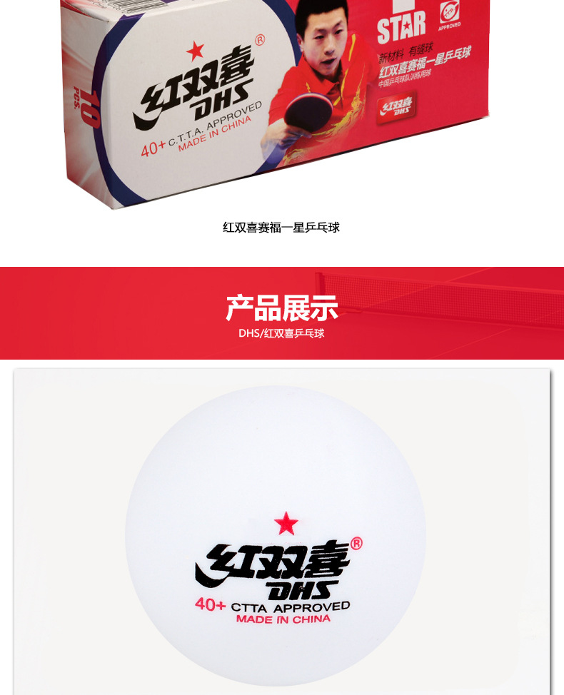 紅雙喜DHS 40mm白色二星乒乓球?qū)I(yè)比賽