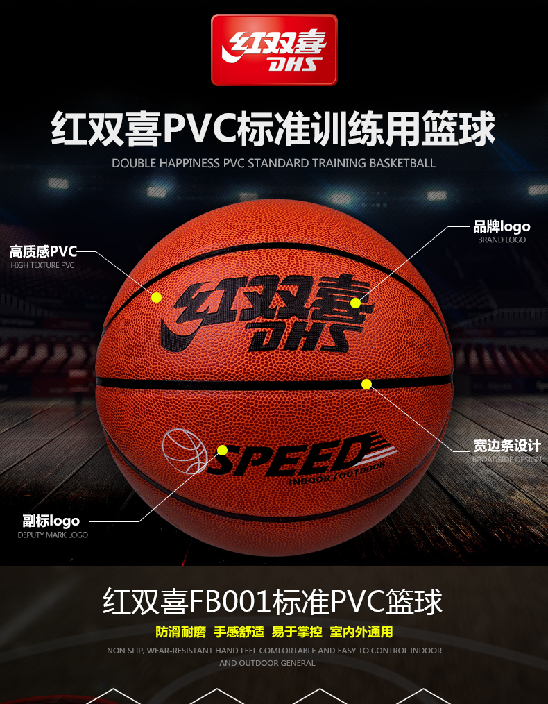 紅雙喜FB001 PVC 籃球 耐磨吸汗吸濕室內(nèi)室外比賽PVC籃球7號球