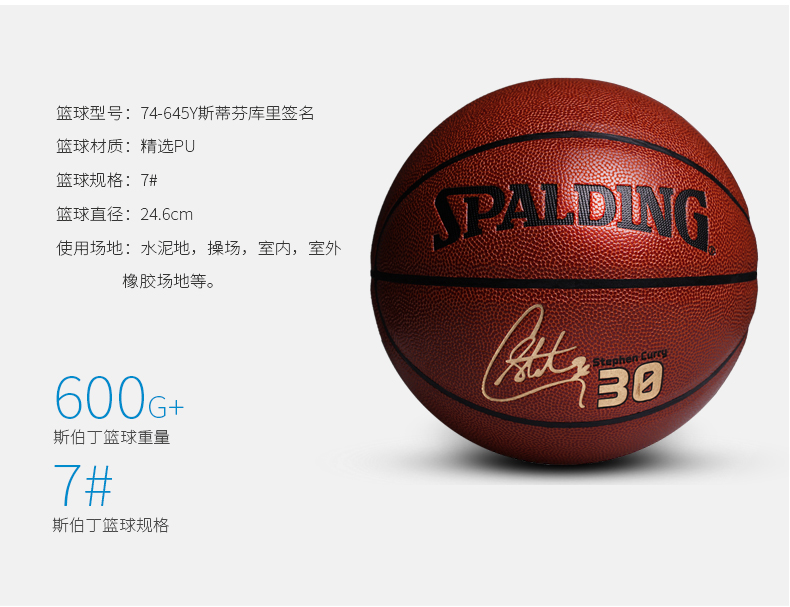 斯伯丁藍(lán)球74-645y正品室外耐磨NBA七號(hào)庫(kù)里軟皮PU籃球