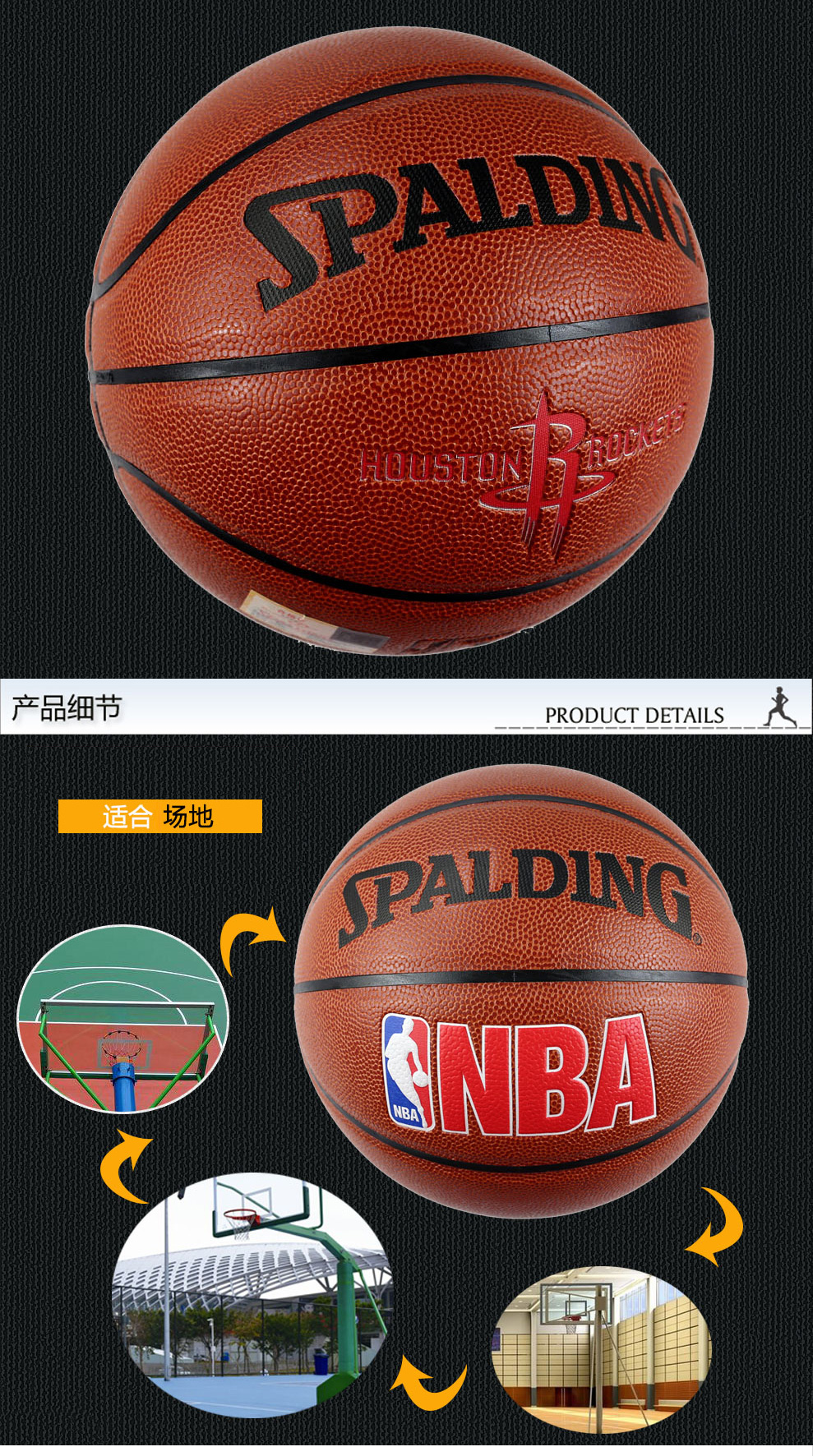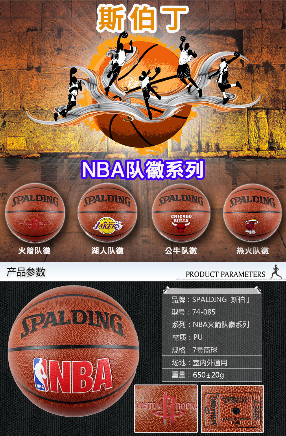 斯伯丁籃球74-085 室內(nèi)室外7號(hào)標(biāo)準(zhǔn)尺寸PU籃球 NBA隊(duì)徽系列藍(lán)球 火箭隊(duì)