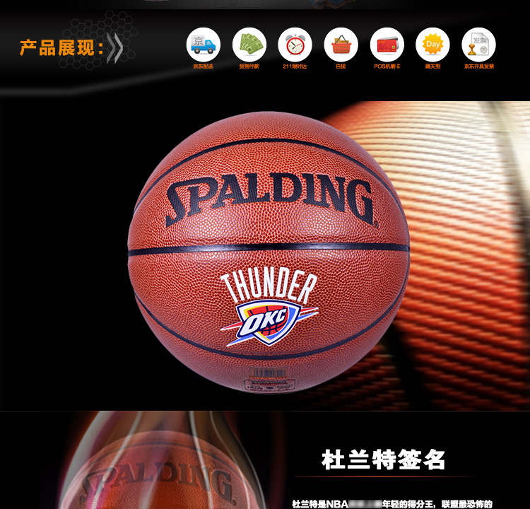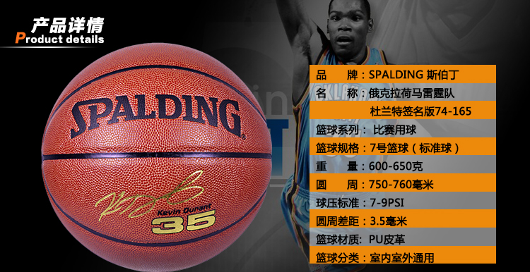 斯伯丁籃球74-165 俄克拉荷馬雷霆隊(duì) 杜蘭特簽名版 PU材質(zhì) 籃球