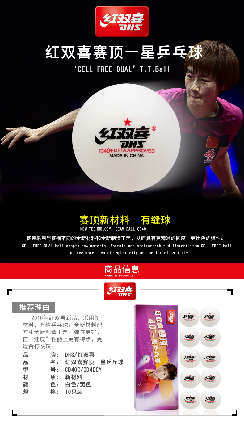 紅雙喜(DHS) - CD40C賽頂40+一星乒乓球(十只裝)