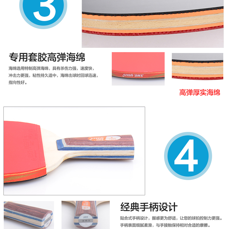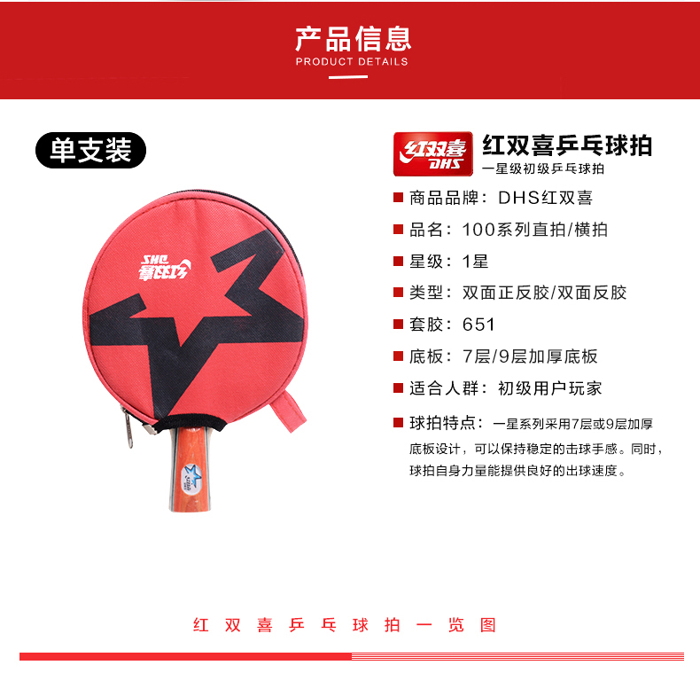 紅雙喜(DHS) R1002-R1003-R1006-R1007一星乒乓球拍