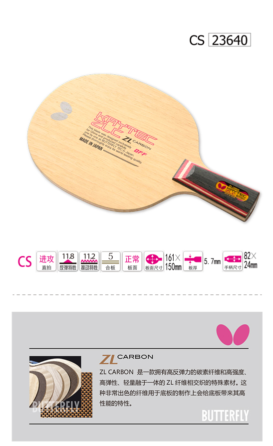 Butterfly蝴蝶23640 KAYTEC-ZLC 乒乓底板 中國式直拍