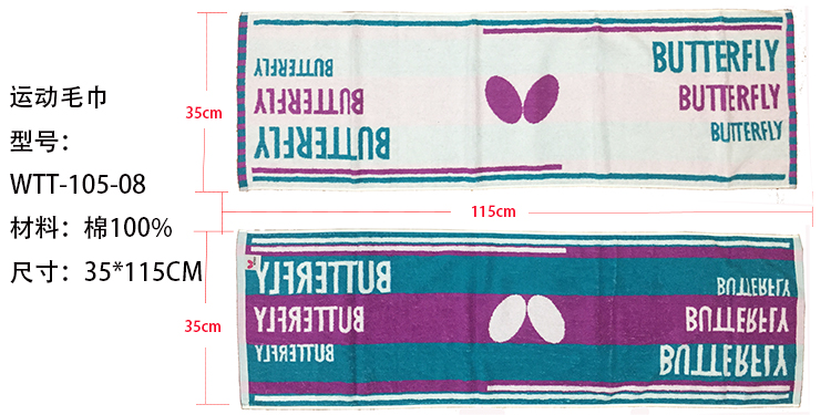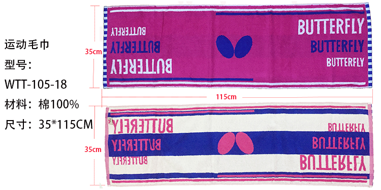 蝴蝶butterfly乒乓球運動毛巾 汗巾 WTT-101帶防偽