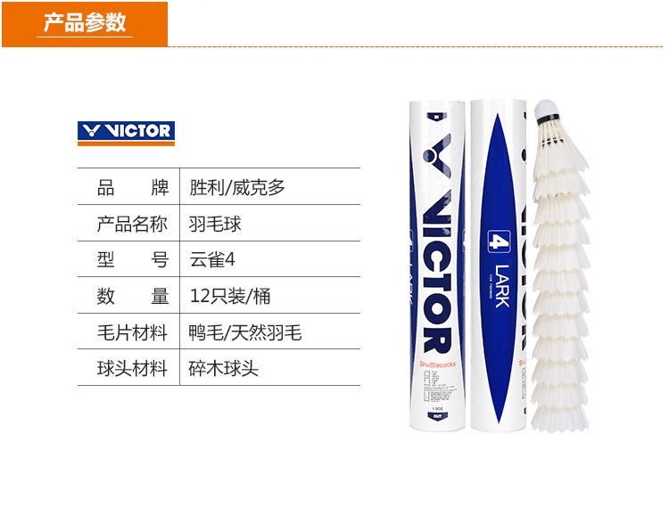 威克多VICTOR 勝利云雀4號LARK4羽毛球 練習用羽球 穩(wěn)定耐打 12只裝