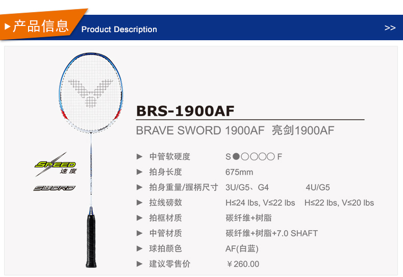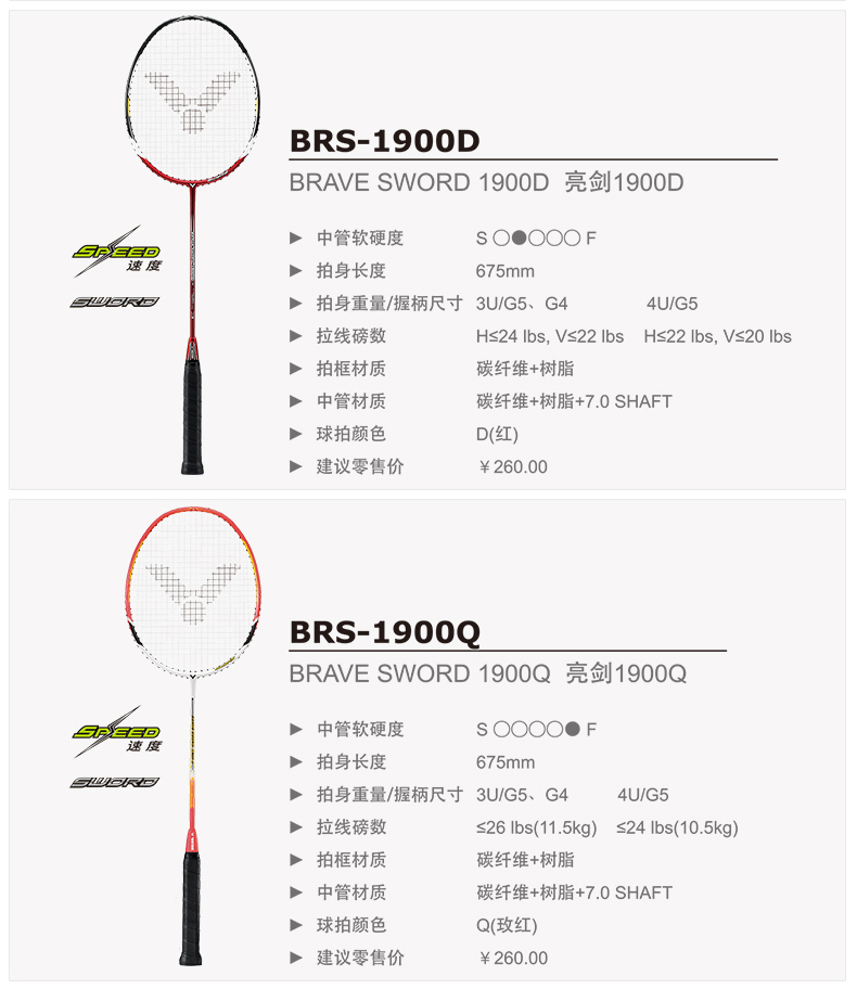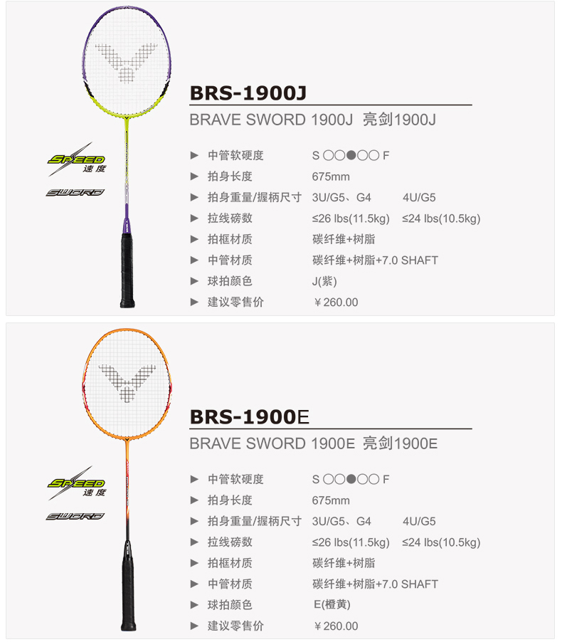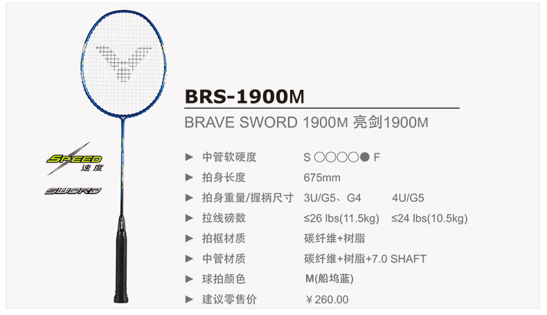VICTOR威克多羽毛球拍單拍全碳素業(yè)余初級(jí)速度類亮劍BRS-1900