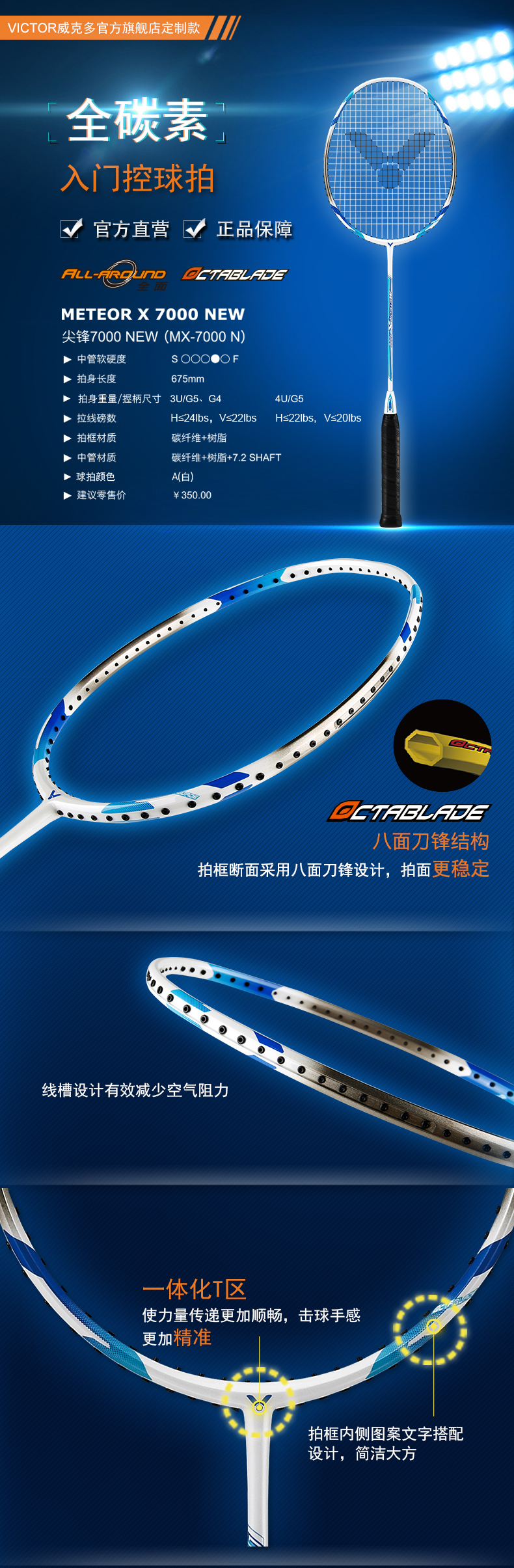 VICTOR威克多羽毛球拍單拍全碳素業(yè)余初級(jí)訓(xùn)練級(jí)全面類 MX-7000N