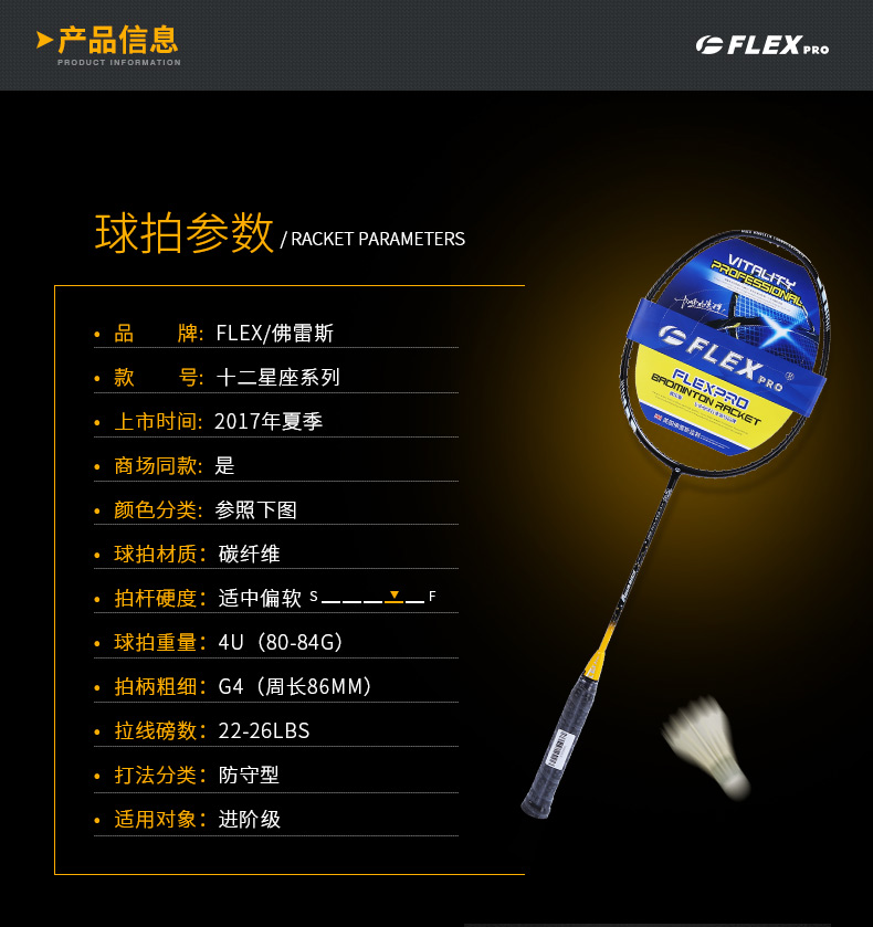 佛雷斯FLEX羽毛球拍全碳素超輕耐用進攻型成人男女十二星座單雙拍