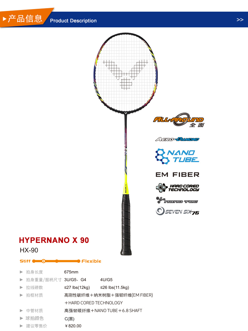 VICTOR威克多羽毛球拍碳纖維中高級精準(zhǔn)穩(wěn)定全面類HX-90