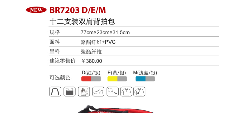 勝利VICTOR威克多 羽毛球包BR7203六支裝單肩背拍包