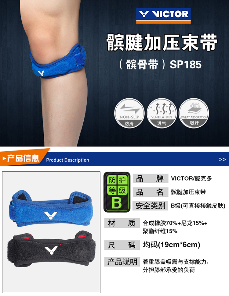 勝利VICTOR羽毛護(hù)具SP185護(hù)膝 髕骨加壓束帶