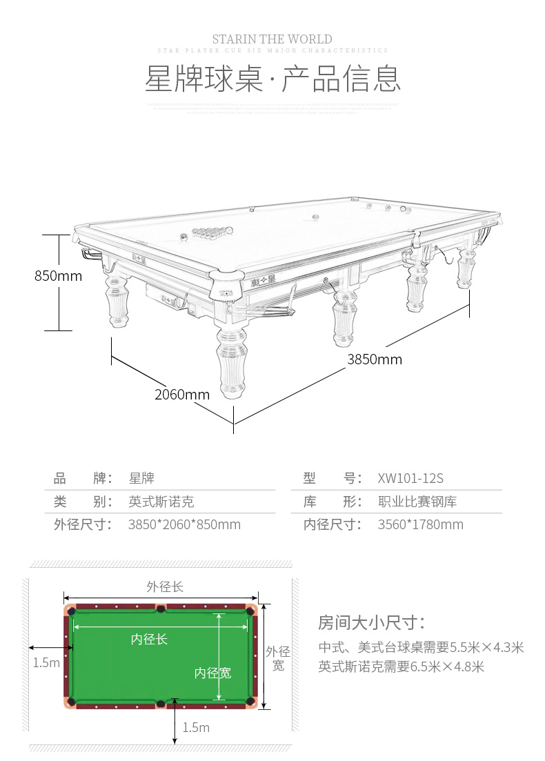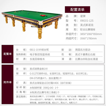 星牌 臺(tái)球桌 XW101-12S英式斯諾克世錦賽用臺(tái)