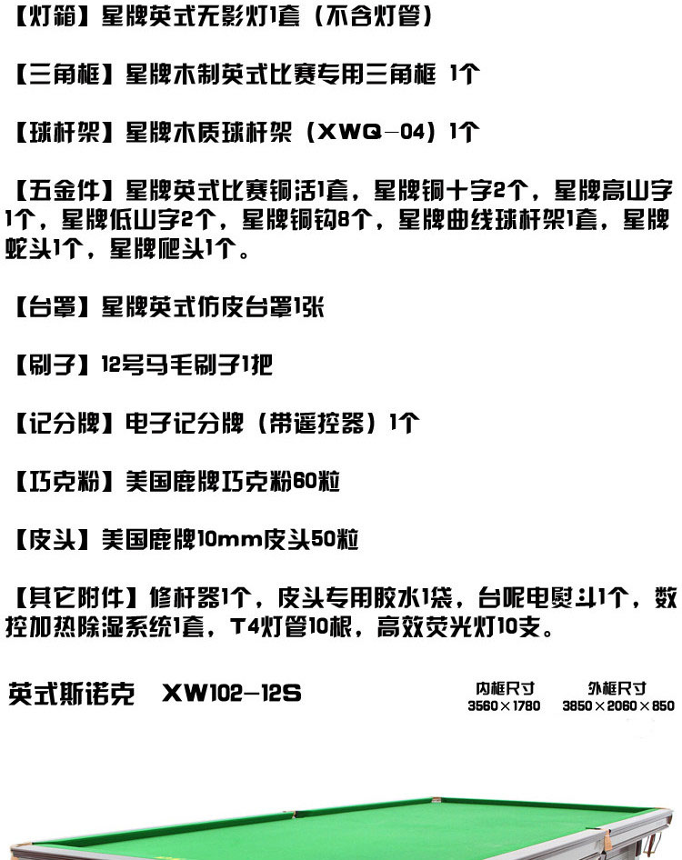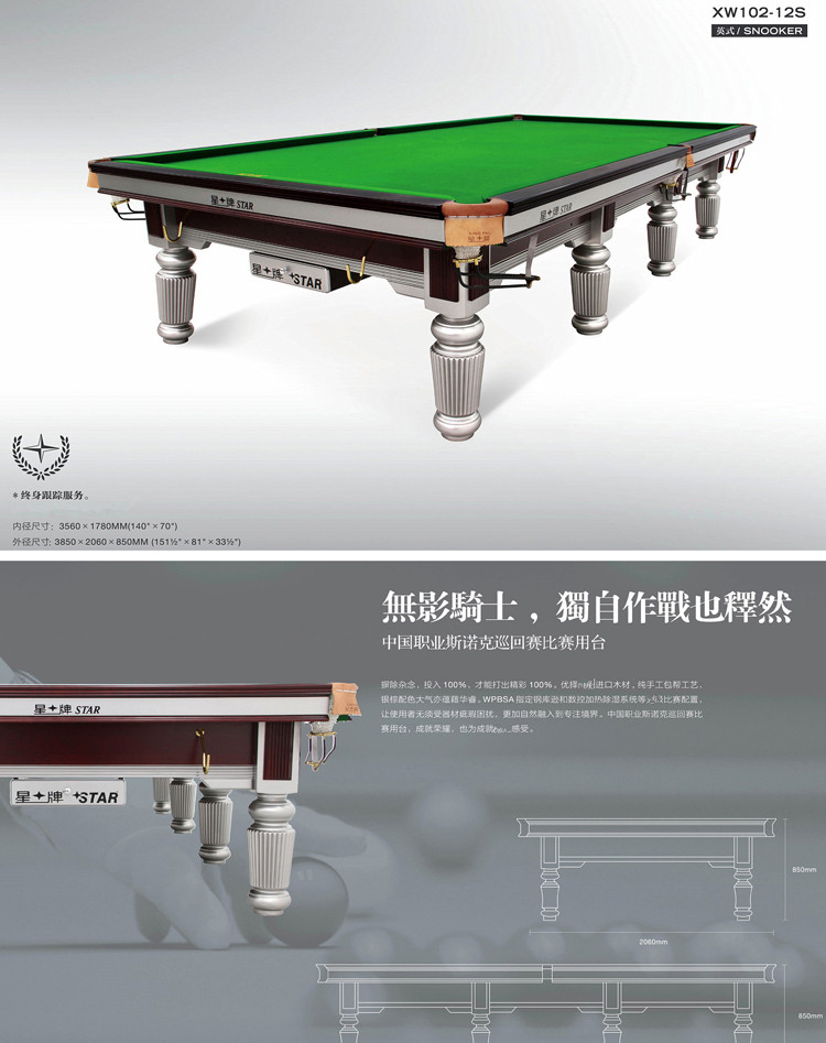 星牌 臺(tái)球桌 XW102-12S英式標(biāo)準(zhǔn)斯諾克球臺(tái)