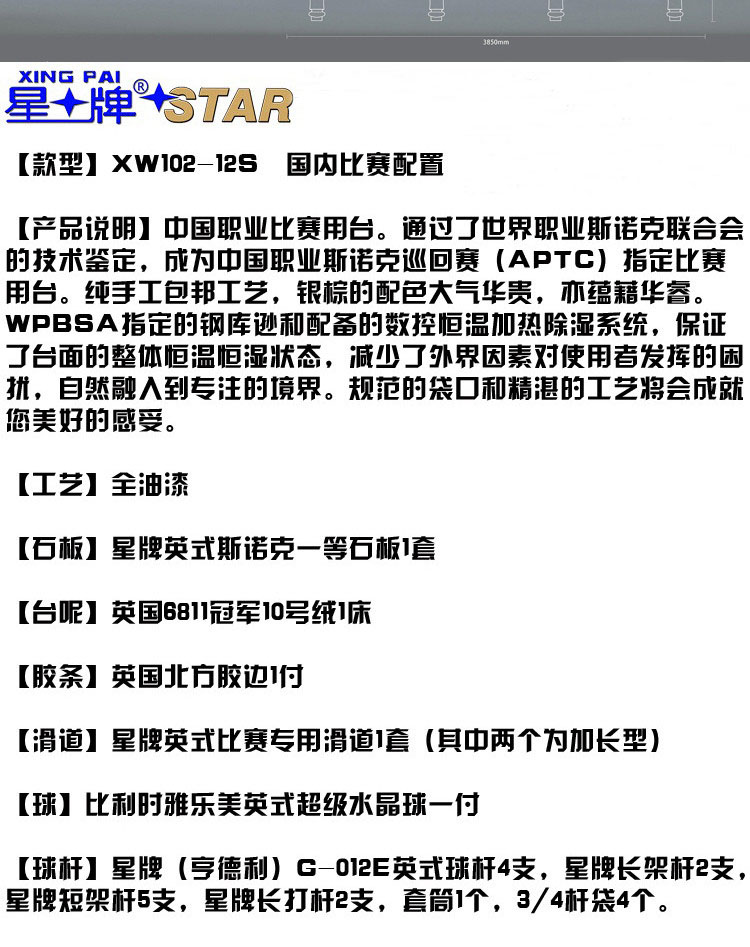 星牌 臺(tái)球桌 XW101-12S英式斯諾克世錦賽用臺(tái)