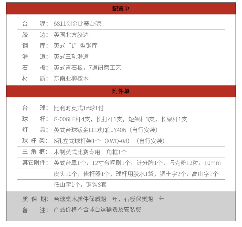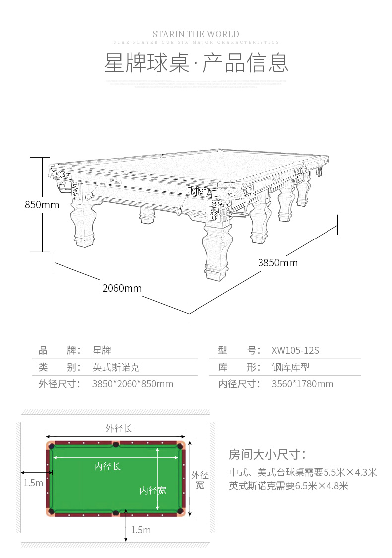 星牌 臺球桌 XW105-12英式標(biāo)準(zhǔn)斯諾克球臺(臉譜版)