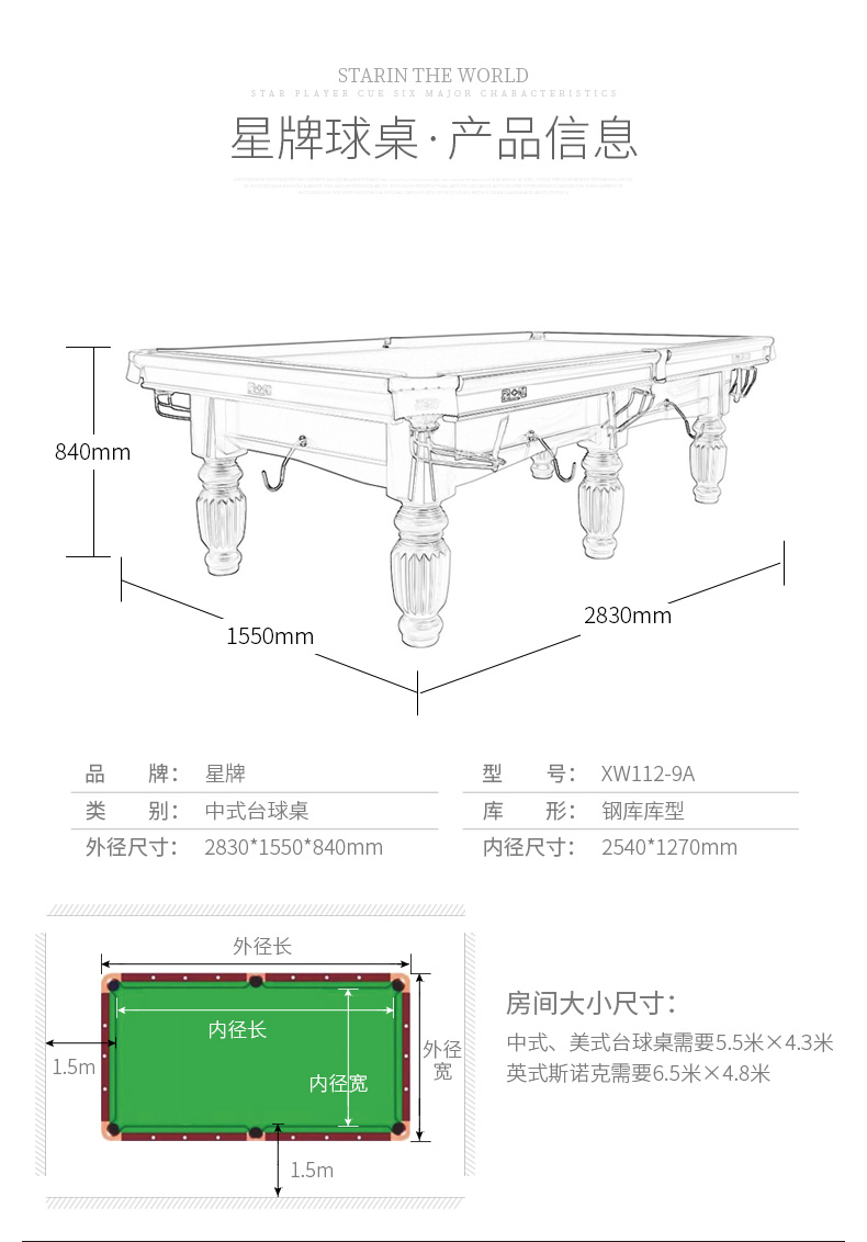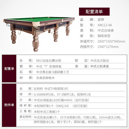 星牌 臺球桌 XW110-9A中式世錦賽指定用臺